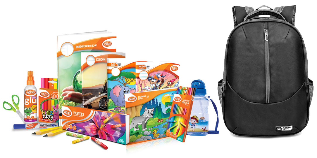 The Grade 6 school supplies pack and the Active Fit School Bag purchased from www.atlas.lk